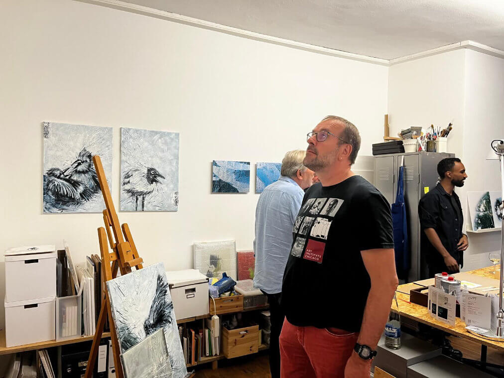 In einem persönlichen Rahmen lernen Sie die beiden Künstler zunächst in einer Vorstellungsrunde kennen – zwei Positionen, die sich seit Jahren freundschaftlich verbunden sind und dennoch ganz eigene Wege gehen.
