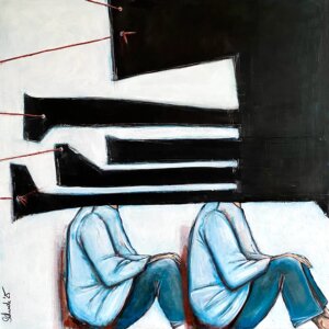 Atelier im Shalima, Luxemburger Straße 263, 50939 Köln           Ich entwerfe szenische Momentaufnahmen, bilde das Zusammenspiel von Nähe und Distanz, das Ungesagte zwischen den Figuren ab. Meine Protagonisten sind oft losgelöst von einem konkret räumlichen Bezug und bewegen sich in einem Bildraum, der durch skizzenhafte, flächige Strukturen und angedeutete Tiefen definiert wird. So kann sich der Betrachter ganz auf ihre Körperhaltungen, Gesten und die damit zum Ausdruck gebrachten feinen Nuancen (zwischen-) menschlicher Empfindungen konzentrieren.