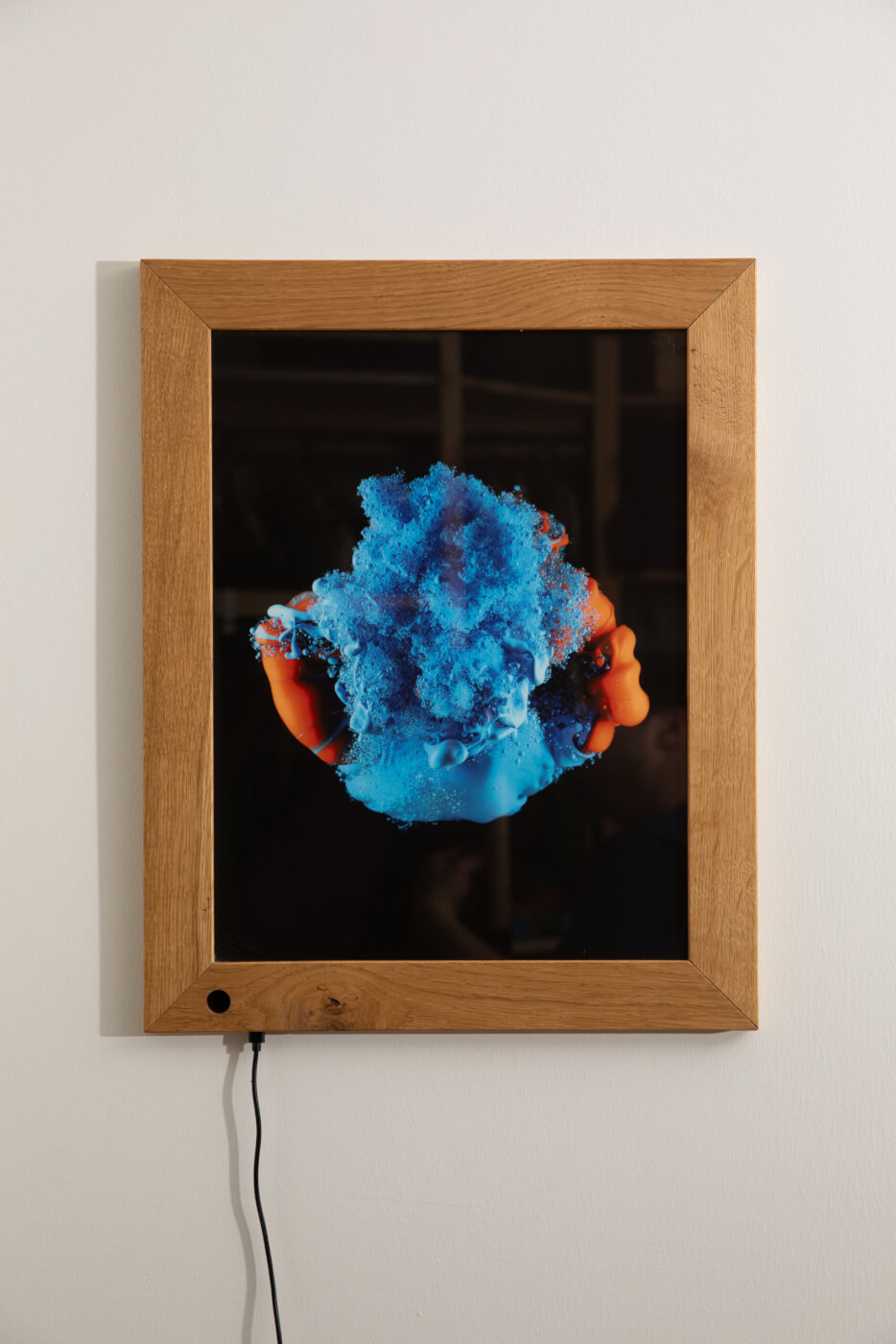 „“Caeruleum et ignis““ ist ein Foto welches eine Farbexplosion darstellt. Dieses Foto wurde mit einer high-speed Aufnahme festgehalten. Dadurch wird es zu einem einzigartigen, nicht reproduzierbaren Moment. Der Rahmen wurde aus hochwertigen upcycling Eichenholz gefertigt. Es wird via LED durchleuchtet und kann mit drei Helligkeitsstufen geregelt werden.