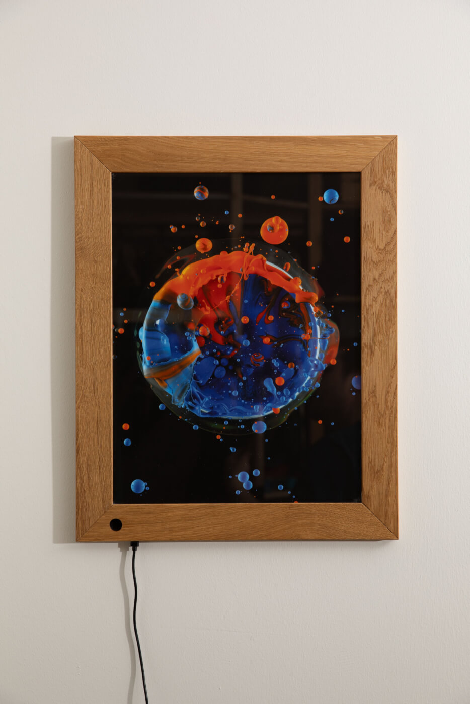 „Helix II“ ist ein Foto welches eine Farbexplosion darstellt. Dieses Foto wurde mit einer high-speed Aufnahme festgehalten. Dadurch wird es zu einem einzigartigen, nicht reproduzierbaren Moment. Der Rahmen wurde aus hochwertigen upcycling Eichenholz gefertigt. Es wird via LED durchleuchtet und kann mit drei Helligkeitsstufen geregelt werden.
