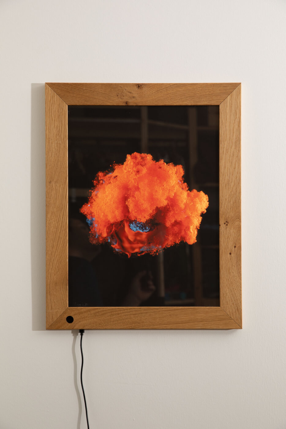 In meinen Arbeiten entwickle und baue ich handwerkliche Konstruktionen, die es ermöglichen, die Entfaltung und Bewegung von Öl- und Acrylfarben unter Wasser zu erzeugen. Die dabei entstehenden, äußerst flüchtigen Momente halte ich fotografisch fest. Präsentiert werden die Fotos in einem dünnen Leuchtrahmen aus Eichenholz