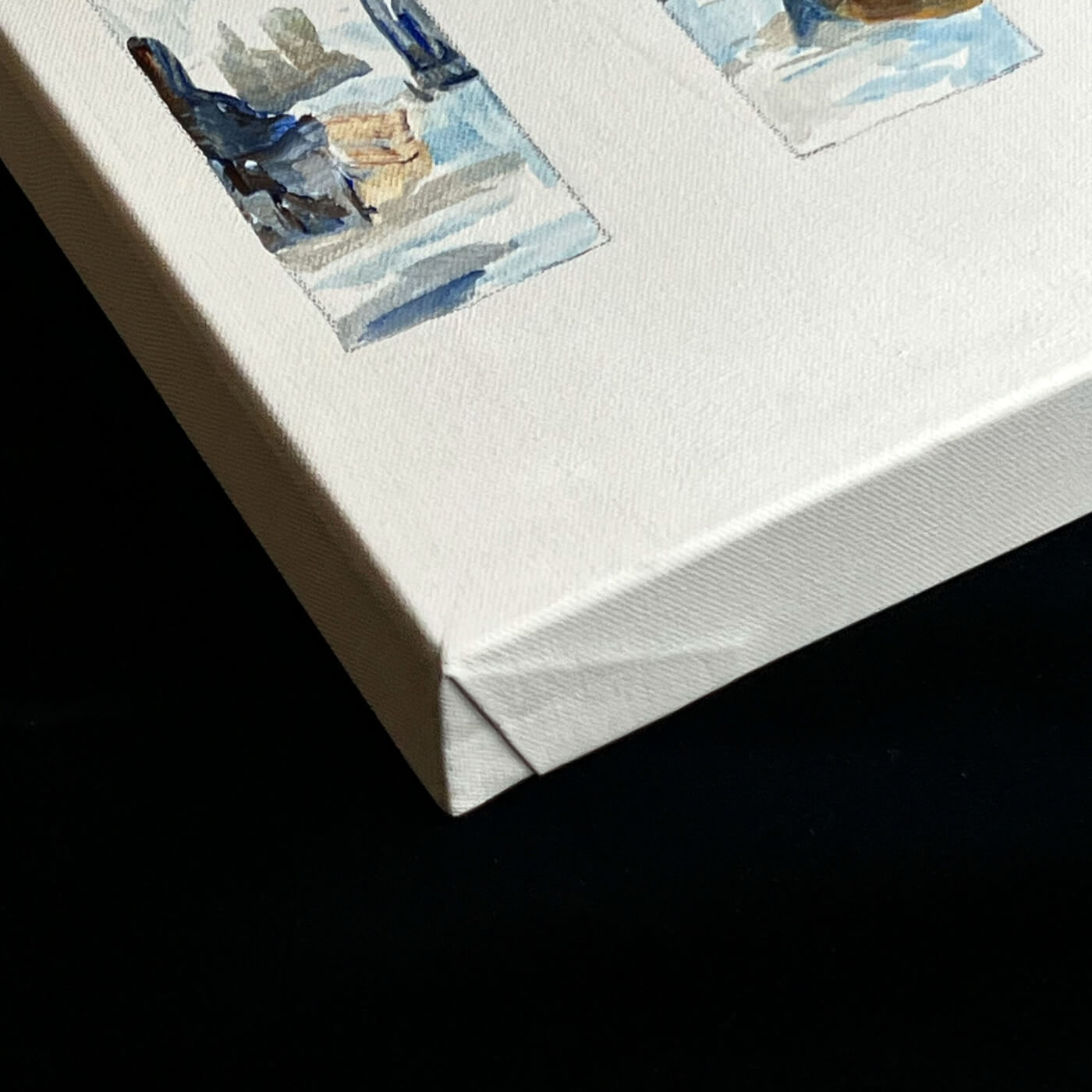 Die Acrylmalerei auf 4 cm starker Leinwand verleiht dem Bild Objektcharakter und unterstreicht Präsenz und Tiefe.
